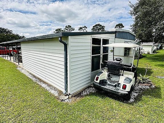 Golf cart included for convenient community travel. Partially furnished, including a nearly new $4,000 lift chair. Extra-long carport with step-free entry no stairs to climb. Not one, but TWO carports and two driveways for plenty of parking. Extra-large storage shed ideal for hobbies, Florida room converted into an additional sitting, dining area or man cave unlimited possibilities. Designated office with custom desk and storage cabinets. Spacious kitchen perfect for any cook, with lots of room for gathering. Walk in shower for easy accessibility. This home truly offers everything a senior could dream of comfort, convenience, and a fantastic lifestyle. Call today to schedule a showing this one will not last!