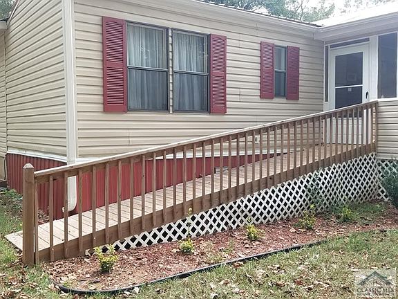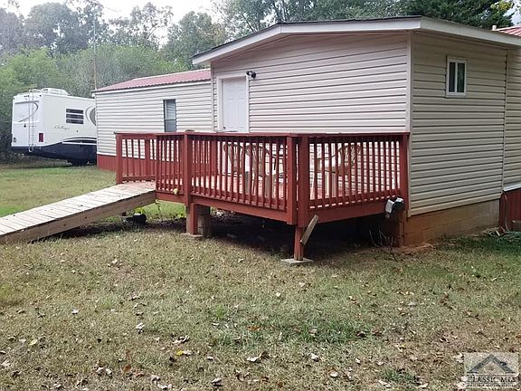 MANY ADDED IMPROVEMENTS IN 2016 - 2018! AN ADDITION TO LIVING ROOM - SCREENED IN PORCH - TIN ROOF - BATHROOM - NEW HVAC - Comfort on a budget! Wheelchair ramp, level lot, peacefulness of the country yet convenient to Commerce, I-85 and Athens..Metal storage building with electricity...private backyard with deck and wheelchair accessible...sit on the nearly new screened in porch and enjoy the breeze and peace...2003 Mobile home with additions...Just under a 1ac. lot