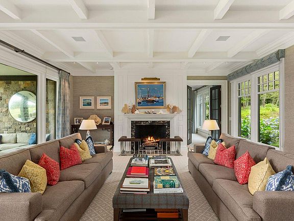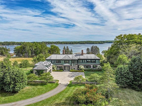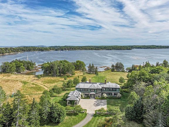Located on 22.21± secluded acres up-island on Islesboro, Longmeadow Farm is an exceptional waterfront estate with southwesterly views across Seal Harbor and Penobscot Bay towards the Camden Hills. Custom-designed by the current owners in collaboration with top professionals, the main residence blends the understated elegance of Shingle-style architecture with meticulous, modern craftsmanship. Showcasing refined coastal living, the home features impeccable attention to detail, from luxurious natural materials to seamless indoor-outdoor transitions—all intended to blend with the surrounding landscape. An open main floor plan combines comfort and elegance, with rooms appropriate for larger gatherings while others are designated for intimate family settings. Six well-appointed bedrooms, including a main-floor primary bedroom suite, provide comfortable and private accommodations. There is also a three-car garage with a two-bedroom caretaker's apartment above it. The property's landscape features manicured lawns, mature gardens, gently rolling fields, wooded areas, and a historic pastoral lane that winds through the land. 2,695± feet of shorefront varies from sheltered coves, pebble beaches, granite outcroppings, and there is a deep-water dock with a ramp and float for direct access to the bay and the mainland. The property is subject to a Conservation Easement held by the Islesboro Islands Trust to protect the land's natural beauty.