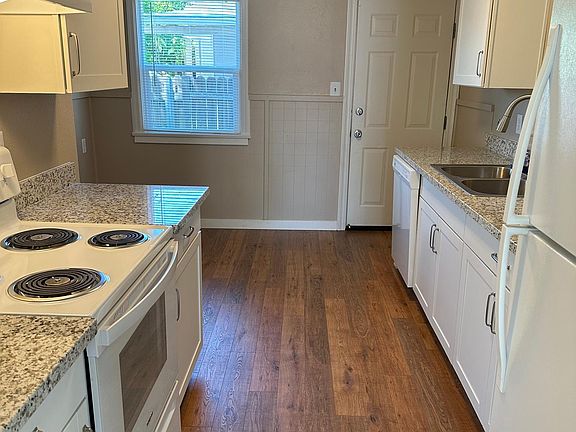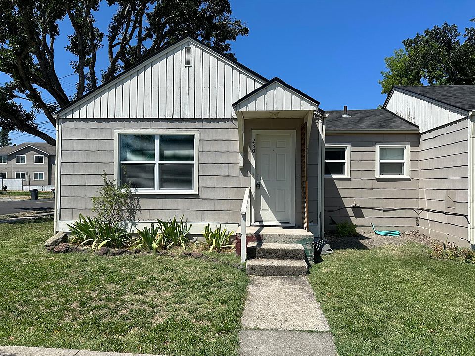 This is a cute 1 Bedroom, 1 Bath duplex close to downtown Medford. This property has a recently remodeled kitchen including new cabinets, granite countertops, fridge, range, dishwasher, and new floors. It also comes with a washer and dryer in a shared laundry room. A new mini split was installed last summer which provides heat and air conditioning. One off street parking spot with large storage garage. We pay water, sewer, garbage, and yard service.
