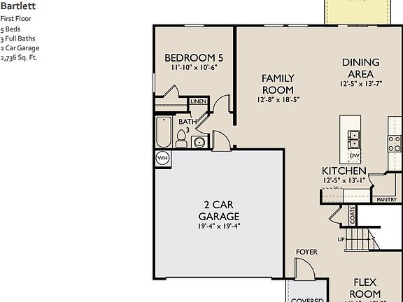 Five-bedroom bartlett planCovered patioThree secondary bedroomsProfessional curated design finishesOpen designer-curated kitchenStainless appliancesTile backsplash