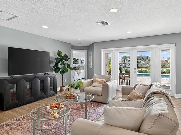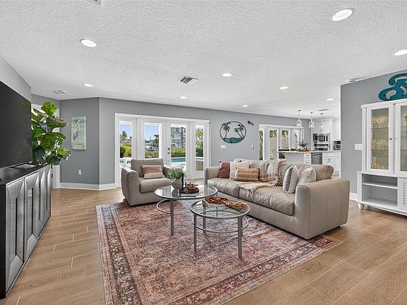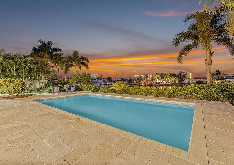 Experience waterfront living at its finest in this beautifully remodeled Island Estates residence. With three bedrooms, two bathrooms, and refined finishes throughout an airy, open layout, the home is designed to make every day feel like a vacation. Step through the front door and take in sweeping water views and light-filled living spaces, perfect for effortless coastal living and easy entertaining. The kitchen is a true centerpiece, featuring a large leathered-granite island ideal for casual dining, a 4-burner gas cooktop, sleek stainless-steel appliances, abundant storage, and captivating views that make cooking a pleasure. A split-bedroom plan ensures privacy for the primary suite, complete with a beautifully tiled shower and a quartz dual-sink vanity, while comfortable guest rooms and a large indoor laundry room add everyday convenience. Open the back doors to a resort-style backyard with a saltwater in-ground pool, a covered patio, lush tropical landscaping, and seamless canal vistas. Your private dock includes 30-amp electrical service, ready for a future boat lift and ideal for launching kayaks and paddleboards, so you can spend more time on the water and less time in the car. Blending luxury, function, and the best of the Island Estates lifestyle, you are just minutes to Clearwater Beach, dining, and the open water, this waterfront retreat is tailor-made for buyers who want to live where they love to play.