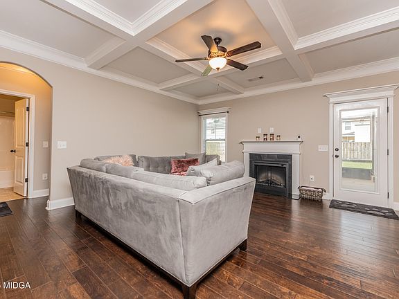 Immaculately maintained 4 bedroom, 3 bath home with a spacious loft and beautifully designed open floor plan. Large kitchen with granite countertops, stainless steel appliances, and an oversized breakfast bar—perfect for entertaining. Elegant coffered ceilings enhance both the formal dining room and living room, adding a touch of sophistication. The expansive owner's suite includes a private sitting area and a luxurious ensuite bath. Enjoy year-round relaxation in the large enclosed patio featuring a cozy fireplace. The generously sized backyard offers plenty of space and privacy with a full fence—ideal for gatherings or quiet evenings at home.