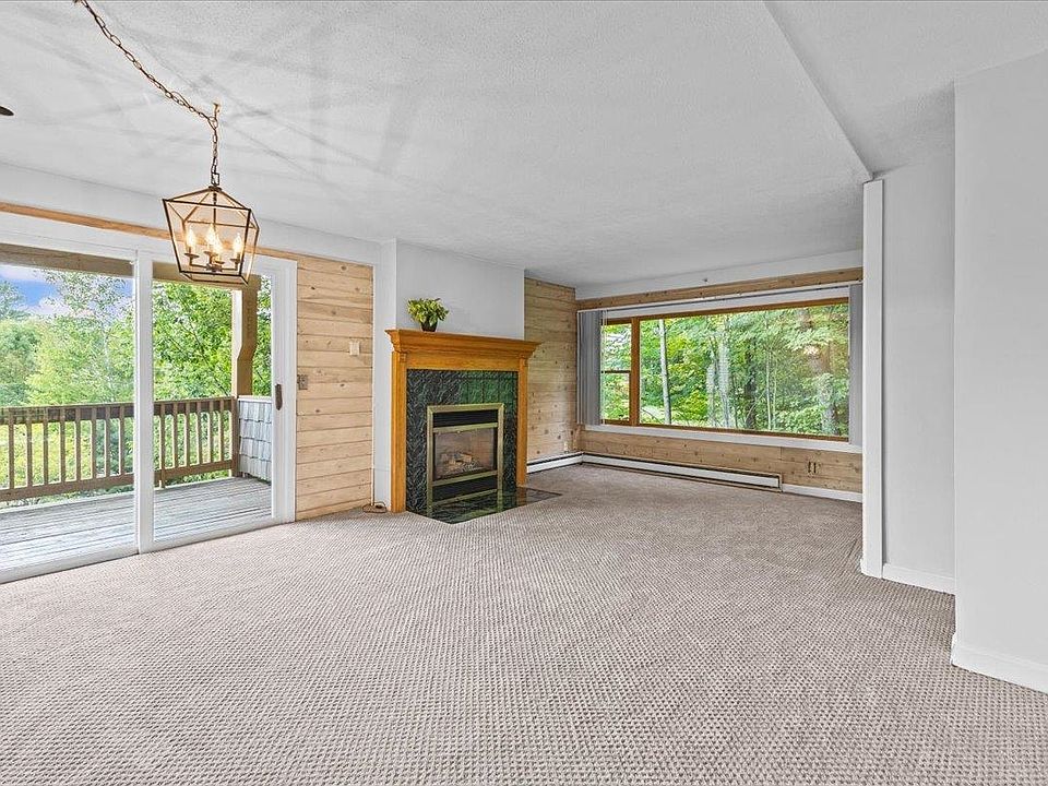Escape to the serene beauty of Stowe, Vermont, with this charming two-bedroom Mountainside condominium, perfectly situated in the heart of all the action. This recently renovated unit features new flooring, renovated bathrooms and a spacious covered deck. Ideally located, it combines cozy comfort with modern style offering a peaceful retreat just minutes from year-round outdoor adventure. Inside, an open floor plan and expansive windows fill the space with natural light, creating a warm and welcoming atmosphere. Step outside and enjoy easy access to ski slopes, mountain biking, hiking trails, the Stowe Recreation Path, breweries, restaurants, and more. Mountainside offers a variety of on-site amenities including a year-round indoor heated pool, fitness center, and tennis courts. A walkable bus stop provides convenient transportation to the mountain. Whether you're looking for a weekend escape, an income-generating rental, or a full-time residence, this condo offers incredible value along Mountain Road and a front-row seat to all that Stowe has to offer.