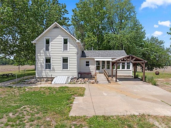 Welcome home to your private retreat! This updated home sits on 4.6 peaceful acres near the river where wildlife is abundant* Wonderful kitchen with updates with just the right touch in colors* large, open living areas will give you space to spread out for the family leisure time and the wood-burner will make it cozy and new carpet in the living room* the main bedroom on the first level will save you from making extra trips upstairs and just near the updated bathroom* 2 more big bedrooms upstairs giving you all the space you need* extra bonus room for kicking off the boots and spending some time in the rocking chairs or whatever you need it for* the basement is great for the storage space you'll want and there is an cellar exit to make it easier to move items in and out* detached garage space galore for extra parking or working on those projects* you'll love the beautiful carport to keep that car protected from the elements*washer, dryer and refrigerator stay* extra income opportunity with appx 3 acres for farming*