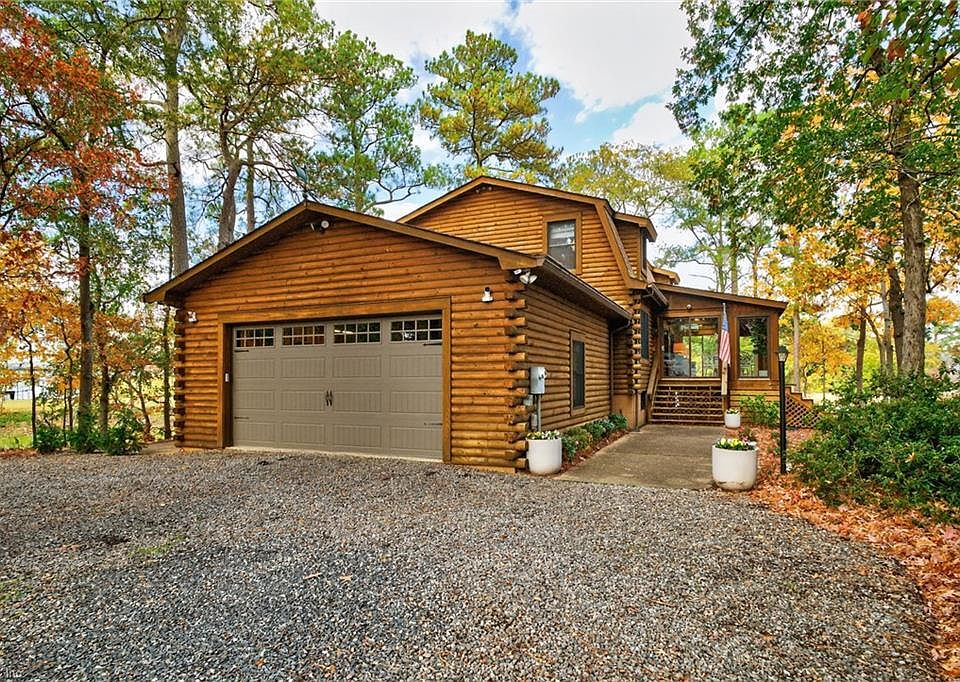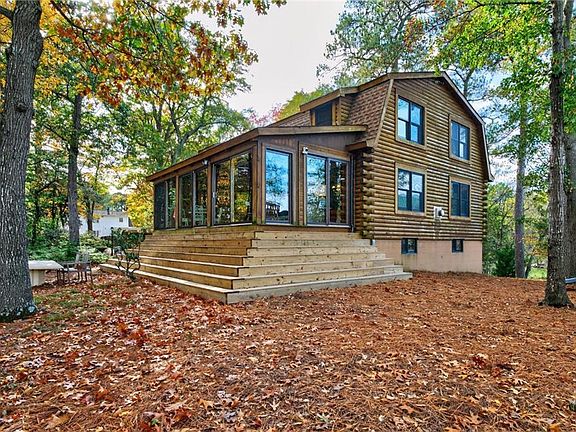 Secluded on a private peninsula in Cromwell Farm, this two-owner log cabin has recently undergone a major renovation & expansion to bring style & sophistication to this unbelievable home. Discover the perfect blend of rustic elegance & modern luxury in this stunning 4-bedroom, 2-bath property, beautifully situated on a private 0.61-acre peninsula w/over 200 feet of water frontage. Thoughtfully updated and meticulously maintained, this one-of-a-kind property offers panoramic water views from nearly every room. Highlights incl. inviting open layout w/warm living/dining room w/gas fireplace, new showpiece chef’s kitchen, sunroom w/skylights, first-floor bedroom/office, mud/laundry room, primary suite w/cathedral ceilings & spectacular views, finished playroom/rec room & spacious 2 car garage. Other feat. include circular driveway, 10 kw generator, Rinnai tankless water heater, new/refinished flrs, designer lighting/plumbing, updated baths & professional landscaping. Dock permit in place.