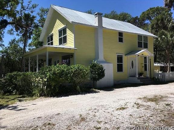 Stunning is the only word needed to describe this gorgeous, historic, waterfront home that has been completely remodeled on the Intracoastal waterway. Just under an acre of land and 125' river frontage with dock and riparian rights. Majestic oak trees fill the property with a beautiful front porch to entertain or simply enjoy your morning coffee watching the dolphins & sailboats go by. Nestled on top of a high lot so you truly get the best riverfront breeze as well as privacy. This 3 bedroom 2.5 bath home with Mother in law suite is a wonderful piece of New Smyrna Beach history built in 1916 and Fully restored and upgraded with new EVERYTHING. This home is completely turn key and has been taken down to the studs and restored to it's classic charm with modern upgrades. Original hard pine floors, new upgraded kitchen with granite, kitchen island, stainless appliances, wine fridge & farm sink. Surround sound throughout the first floor. New high efficiency windows, siding and metal reinforced framing with hurricane shutters for every window including mother in law suite. Sound proof insulation. All new electrical and plumbing. 2-car garage or workshop. Two newer 2014 AC units with 10 year warranty. Gorgeous master bedroom with incredible river views and en suite with insulated jacuzzi tub and walk in shower. No detail was spared - this dream home is a must see!!! All measurements are approximate, measured by realtor.