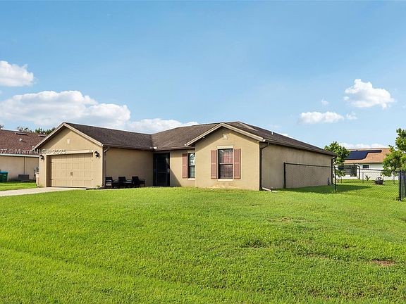 Welcome to this beautifully maintained 3-bedroom, 2-bath home offering 1,522 sq. ft. of comfortable living space. Situated on a spacious corner lot, this property provides extra privacy and curb appeal, complete with a fully fenced yard—perfect for kids, pets, or entertaining outdoors. Inside is an inviting open floor plan with plenty of natural light, a spacious living area, and a kitchen with ample counter space and cabinetry. The split-bedroom layout ensures privacy for the primary suite, which features its own bath and large closet. Additional highlights include tile flooring throughout the main living areas, a screened-in lanai for relaxing evenings, inside laundry room. Located close to shopping, dining, schools, this home combines comfort and practicality in a desirable location.