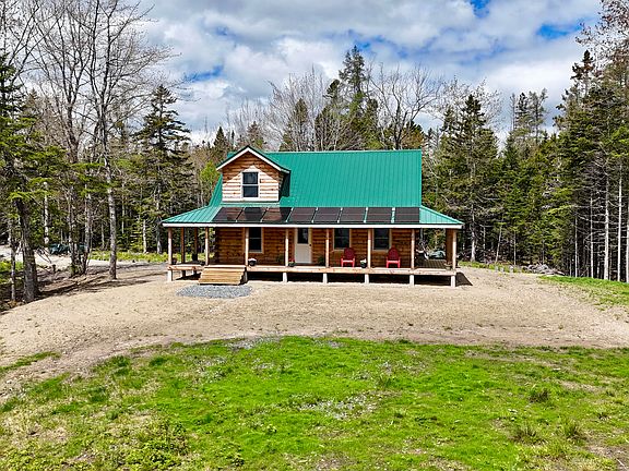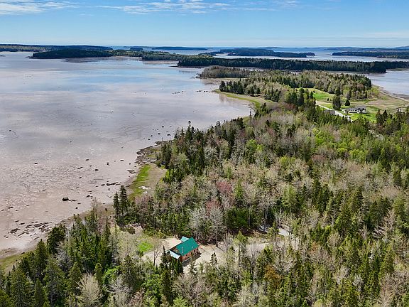 Experience the Best of Downeast Maine. Escape to your own private oceanfront retreat on scenic Flat Bay. This charming Northeastern log home sits on approximately 1,000 feet of shoreline and 10.4 wooded acres of old-growth forest with moss-covered grounds. Wake to breathtaking sunrises and enjoy your morning coffee on the front porch overlooking the bay. The cottage features an open-concept layout with a cozy loft bedroom, blending comfort with rustic elegance. Solar power provides electricity, complemented by an efficient Rinnai propane heater and wood burning stove for year-round warmth. An additional solar powered seasonal cabin by Vermont Jamaica Cottages adds extra charm and flexibility, ideal for guest accommodations or a potential rental. The elevated shoreline opens to stunning bay vistas with a mix of rocky and sandy beach, offering the perfect setting for relaxation, exploration, and coastal living.