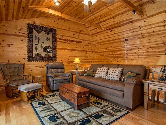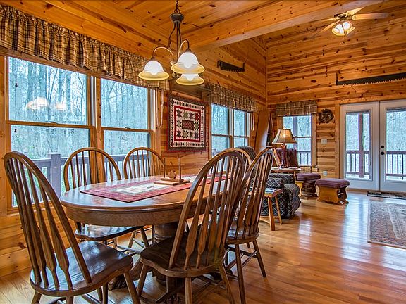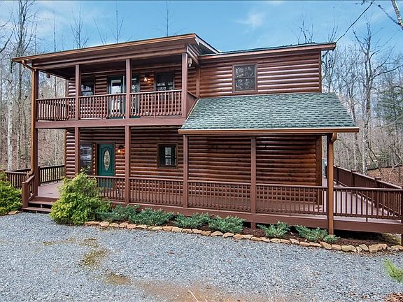 2/2 cabin, great rm w/fp, open kit, w/granite countertops, 2 master suites, loft w/balcony, daylight basement plumbed for 3rd bath and 70% finished, large rear covered porch with walk around decks.