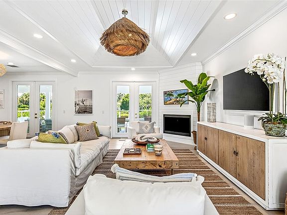 Stunning riverfront home completely reimagined with designer finishes. Relaxed coastal living with refined island-inspired style. Crisp white architectural lines, fresh coastal hues, open-concept light-filled interiors, natural textures, white oak flooring, custom lighting and millwork, elevated yet laid-back feel throughout every room. Multiple living spaces, large island kitchen, indoor/outdoor dining, 1st floor primary suite overlooking the pool, walk-in closets, option for 5th bedroom, all impact glass, new tropical landscaping, whole house water softening system, oversized 2car garage.