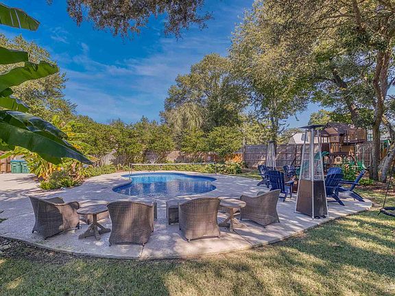 Stunning family pool home in the heart of Gulf Breeze. Sitting on nearly half an acre corner lot, framed by mature Live Oak trees, you’ll find this freshly painted brick beauty. This 4 bed 3 bath property is high and dry. It’s move in ready with all the extras and upgrades. Walk inside you’ll find the light and bright spaces to fill your family’s needs. A welcoming living room and formal dining room. A family room complete with fireplace and built in aquarium, continuous luxury vinyl plank flooring throughout. Step into the kitchen, white cabinets, stainless steel appliances, bay window with space for a large eat in table. A bonus sunroom offers even more gathering space. Surrounded by windows, you have views of the expansive backyard. Outside provides all kinds of opportunities to relax, unwind and play in a tropically landscaped private oasis. A saltwater gas heated pool, a fire pit, a child’s dream playset, a hot tub, plenty of open grass space, a separate shed for yard toys and tools. For safety, a whole house generator. Back inside, four large bedrooms, the primary with en-suite bathroom. The laundry room connects to the large heated and cooled garage. This home is close enough for the kiddos to walk to school, or use the community multi-purpose path to bike, scooter or golf cart through the family friendly neighborhood. Tennis and pickleball courts are just a block away. The gorgeous Gulf waters of Pensacola Beach are minutes away. Downtown Historic Pensacola is right across the 3 mile bridge. Come check out this gem and call it home. Open house Sunday November 9th 1pm-3pm.