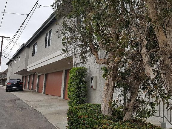 HUGE townhouse style with 2 car garage and outside pad for parking in front of garage; living space on 2nd floor accessed by ground floor entry. Only 1 shared wall; bright with lots of northern and western exposures. Nearly 1100 square feet; large loft style living room area adjacent to open kitchen with breakfast bar makes this feel like a large home. Small patio pad for bar.b.que in front of residence. All living spaces have new designer vinyl plank flooring and modern wood blinds. Kitchen has lots of storage and has been remodeled with new LED can lighting, reglazed tile counter and backsplashes. Includes dishwasher, stove and refrigerator. New stacked washer/dryer in large bathroom. Extra storage cabinets in hall between bedrooms. Master bedroom has northern exposure with master bath and large closet with mirrored wardrobe doors and small office alcove. Second bedroom has mirrored wardrobe doors with lots of closet space and access to private secluded patio deck. Fresh paint, new light switches, outlets, LED lighting. Large 2 car garage includes EXTRA storage shelving! Separate, new water heater serves just this residence. Walk to all area amenities: library, parks, main street, downtown dining, beach. Building newly repainted in warm earth tones to complement the beach location. You will appreciate the value in the premium rent for this residence; unique townhome style apartment living--awesome alternative to Venice and Playa Vista located in Mayberry by the sea! Tenant pays gas, electric. Landlord pays water, trash and gardener.