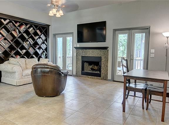 Custom built home nestled in the Pines! Open living plan with 10 ft. ceilings. Stainless appliances, detailed glass backsplash, and plentiful cabinets in this beautiful kitchen. Master suite features makeup area, jetted tub and large walk in shower. Fireplace and two sets of double doors leading out to covered porch in living. Plentiful storage including additional racks in the garage and decked attic storage. Private setting, no neighbors behind. This neighborhood is a gem, just outside of Bastrop.
