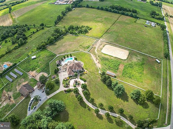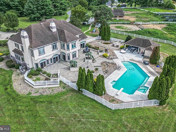 A private oasis awaits with 27+ acres of luxury - This expansive property offers a picturesque setting amidst lush greenery and serene surroundings.- Paver Patios encapsulate show stopping in ground pool and spa with private pool house, Main house features 8000+ Square foot of bright well lit and well flowing floor plan. Chef's gourmet kitchen with full wet bar, formal dining room overlooking beautiful rolling pastures and riding arena, sunken family room, flex room/ office powder room, mud room, and grand entry. First floor features radiant floors, 3 stop elevator, full finished basement, full private owners suite, a secondary suite on opposite end of second floor, perfect for in laws or an au pair - 2nd floor laundry room, walk up attic & full finished basement with second full bar perfect for a game room, play room, or expansive storage. property features detached garage with vet quarters, 6 stall barn with hay loft, round pen, owned solar panels, a whole house generator, automatic waterers in fields, lush green pastures, and private barn driveway.