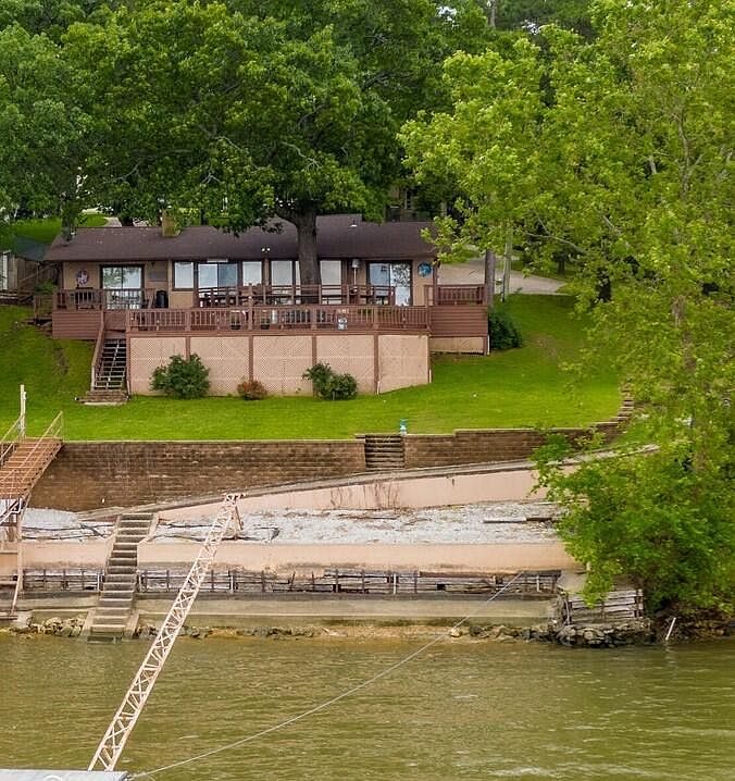 Gorgeous home ready to start producing income or make it your own private retreat. This beauty has 100' mol of water frontage. Amazing views of the lake from throughout the home. This waterfront 3 bd, 2 ba home has no restrictions from operating as a VRBO or Airbnb. It can easily sleep 8 comfortably. Master bd entertains a king size bd & private ba. French doors open to the private back deck. Bd #2 comfortably holds a queen size bd and has sliding doors looking onto the lake. 3rd bd sleeps 2 comfortably in its full-size bd. This outdoor oasis not only gives you the breathtaking lake views, but it is an entertainer's dream! 2 level deck on lake side, rock beach, boathouse w/1 boat slip, storage rm to store your boating toys & an attached hydro hoist jet ski dock. Owner is a licensed Realtor