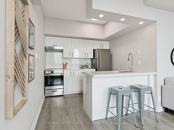 Extensively renovated and thoughtfully reimagined, this rare one-bedroom corner suite at the iconic Riviera is a true waterfront retreat. From the private balcony, enjoy wide, open views of Lake Ontario and the Toronto Harbourfront. Every room is filled with natural light and calm, panoramic scenery. The bright living and dining areas offer open space for both relaxing and entertaining. The brand-new modern kitchen includes quartz countertops, a custom backsplash, an oversized sink, and a sleek breakfast bar. The primary bedroom features stunning lake views and a large walk-in closet. The spa-like bathroom is complete with designer fixtures and fresh, modern finishes. This residence offers the very best of waterfront living, with full amenities including a concierge, exercise centre, guest suites, indoor pool, and sauna. You are in the heart of the city, with everything at your doorstep in one of the most sought-after places to live.