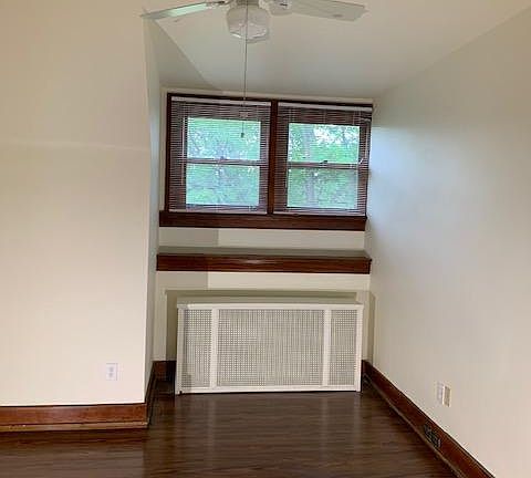 The unit has hardwood flooring, ceiling fans, new blinds, and was just painted. there is coin operated laundry on site. all the stained wood work is original and in great shape.