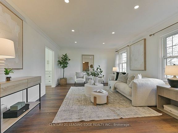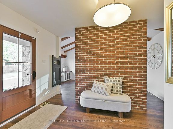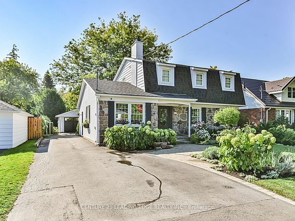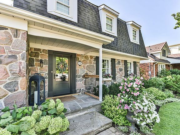 Welcome to 230 Rupert Avenue a magnificent home that combines classic charm with modern elegance. The exterior features a stunning stone facade, painted brick, and traditional shutters, offering exceptional curb appeal that stands out. Inside, the modern French country design flows seamlessly, allowing for endless decor possibilities. Every inch of this home has been thoughtfully renovated with high-end finishes and materials, ensuring a luxurious experience from start to finish. As you step through the front doors, you'll be greeted by an exposed brick wall in the hallway. The open-concept living room offers flexibility for various layouts and is enhanced by pristine flooring, pot lights, and crown molding. Across from the living area is a beautifully appointed dining room with cathedral beamed ceilings and a floor-to-ceiling brick fireplace, creating a warm and inviting space. For those who love to cook and entertain, the kitchen will not disappoint. It features sleek, custom white cabinetry, a contrasting island with quartz countertops, a breakfast bar, a stylish tile backsplash, a farmhouse sink, and wall-to-wall built-ins. The adjacent solarium-style family room is surrounded by windows, offering a bright and airy space with vaulted ceilings and access to the picturesque backyard.The main floor also includes a convenient laundry/mudroom with custom built-ins and a side entrance. The natural wood staircase leads you to the second floor, where you'll find three generously sized bedrooms and a luxurious 6-piece main bath, complete with a skylight, stand alone tub, and rain shower. The walk-up basement offers fantastic potential for extended family or guests, featuring a recreation room, games room, office (or potential 4th bedroom), and an additional bathroom. Outside, the property's stunning landscaping, perennial gardens and lush greenery further enhances the overall charm of this gorgeous home.