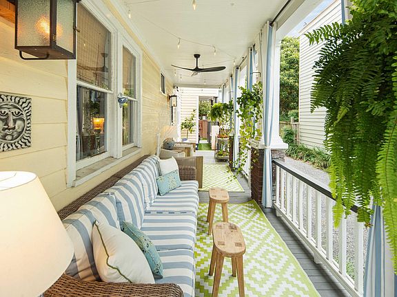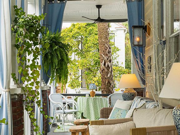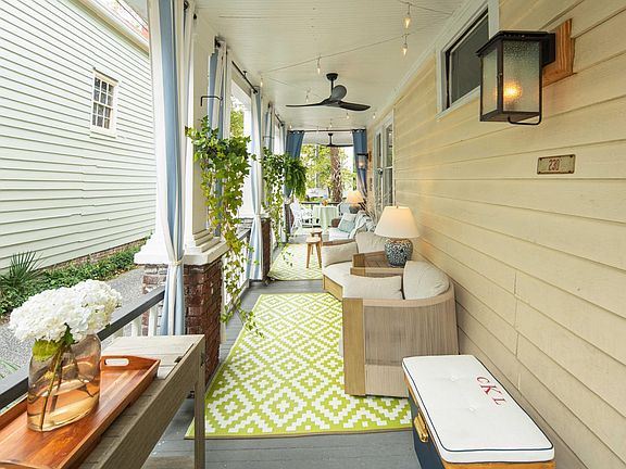 Completely reimagined through an extensive renovation by the owner, an interior decorator, this exceptional two-bedroom, two-bathroom pied-a-terre blends timeless Charleston character with the sophistication of a full-scale custom redesign. Every inch of this residence was intentionally crafted for elevated living--melding premium craftsmanship, designer finishes, and thoughtful spatial flow.At the heart of the home, a bespoke kitchen by 1951 Cabinetry features handcrafted custom cabinets extending to the ceiling, quartzite countertops, and a $25,000 suite of GE Café appliances, including gas range, bar refrigerator, and built-in microwave. Glass-front uppers, under-cabinet lighting, and a dedicated bar and coffee station add both warmth and functionality. The split-bedroom layout ensures privacy, with each suite offering an en suite bath finished in floor-to-ceiling Italian marble, frameless glass showers, and Delta Champagne Bronze fixtures. The primary suite is elevated by a custom walk-in closet system with frosted glass doors and built-in cabinetry, offering a seamless, tailored aesthetic. Throughout the home, refinished hardwood floors (including new living room floors to match the original), Ralph Lauren lighting (over $25,000 in fixtures), and a George Nelson/Herman Miller pendant in the den create an atmosphere of understated luxury. Every switch is fitted with a dimmer, and barn doors in the primary suite maximize space efficiency without sacrificing design. A custom built bar was added into the living room for entertaining guests. Behind the walls, the renovation was comprehensive, new plumbing, upgraded electrical, insulation, and wiring, executed to the highest standard. A key code entry system, new ceiling fans inside and out, and smart efficiency upgrades ensure modern comfort and ease. Outdoor living is equally refined. The private 7.5' wide by 32' level piazza features gas-like lanterns, lower Garapa hardwood sundeck (an $8,000 install) featuring step lighting, and a newly landscaped turf patio with drainage system. A widened gate and new concrete golf cart pad with charging outlet bring rare convenience to downtown living. With 2 deeded off-street parking spaces, a true luxury in the city, and the distinction of being the largest unit in the building, this residence offers exclusivity, efficiency, and effortless style. Positioned just steps from King Street, MUSC, Colonial Lake, and Hampton Park, this home places Charleston's best dining and lifestyle destinations at your doorstep, Chubby Fish, Seahorse, Allora, Vern's, Chez Nous, Bad Bunnies Coffee, Nook Tiny Cafe, Babas on Cannon, and Charlie's Grocery on Spring, along with boutique fitness studios such as The Longevity Club, Ethos Athletic Club, and the MUSC Wellness Center. 230 Rutledge Avenue is more than a home, it's a masterclass in thoughtful design and Charleston living, where craftsmanship, comfort, and convenience converge in perfect harmony.