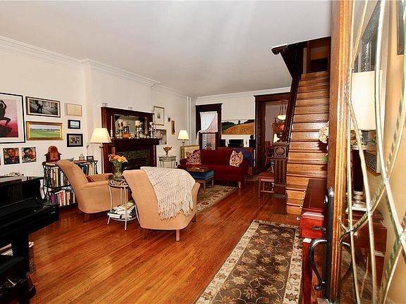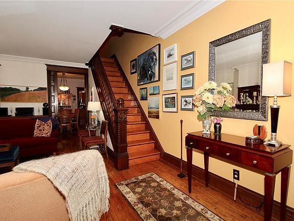 This Victorian Row is the perfect marriage of plush and practicality. As you step in to this 5 BR, 1 ½ BA home you will be wowed by the architectural details of the crown molding, original trim, sophisticated fireplace with tile detail, a combination of hard/soft wood floors and engineered HW floors. The 1st floor features a spacious Living Rm with a stately staircase to the 2nd floor, a formal Dining Rm, an appealing Kitchen including plenty of cabinetry and counter space, and the most adorable Powder Rm. The expansive Master BR is currently being used as a Study, 2 additional Bedrooms, a modern Bath and a conveniently placed Laundry Rm all on the 2nd Floor. The 3rd floor has two more Bedrooms that add more space to this already sizable home. Extras include a covered front porch, paver patio in the backyard, 1-car Detached Garage, updated mechanicals and plenty of storage space in the basement. All this within walking distance to shopping, hospitals, parks and so much more. A real jewel in the city!