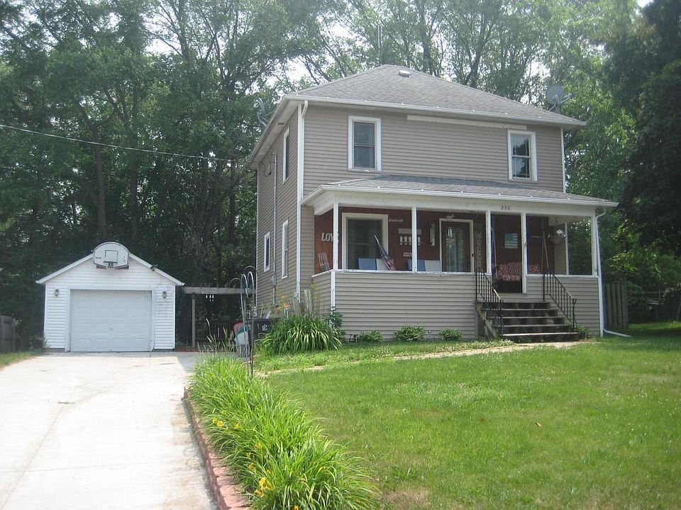 Grand River Frontage Home is Ready for New Owners! Sit on the deck that is nestled above the river and enjoy the views and relaxing sounds. The home offers a covered front porch, natural woodwork, formal dining, spacious kitchen with ample cabinets and countertop space, first floor laundry and half bath combination, and 3 bedrooms in the upper level with a full bath. Vinyl siding and most of the windows have vinyl replacement windows. Call Today for a Private Tour!