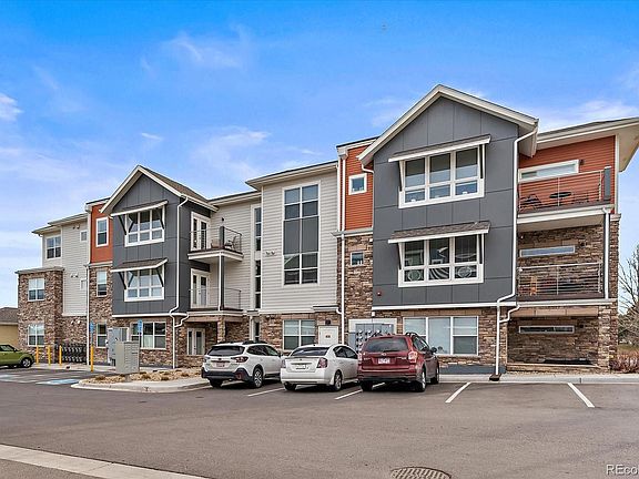 Do you love Mountain views? Well...search no further, this top floor Cherrywood condo unit offers gorgeous mountain views from your living room and balcony. Take the elevator up to the third floor, all one level unit that boasts 9' ceilings with an open floor plan. The large kitchen is beautifully situated off the living room, with a oversized island adoring quartz counter tops, stainless steel appliances, a gas stove, and plenty of cabinet space with under mount lighting, and a perfectly situated dining space for a table to entertain. There is tons of natural light in the living room with the large picture windows and vaulted ceilings. Down the hall you will find generous sized bedrooms with closet, and large hall bathroom with walk in glass enclosed shower. The primary bedroom holds a king sized bed perfectly, the primary ensuite is spacious and includes a walk-in closet. The stackable washer and dryer are included. There is plenty of parking just outside the building along with a detached 1 car garage. This one is a must see! It is centrally located to local businesses, restaurants, and nearby hospital, with easy access to Boulder, Denver, I36, and Northwest Parkway.