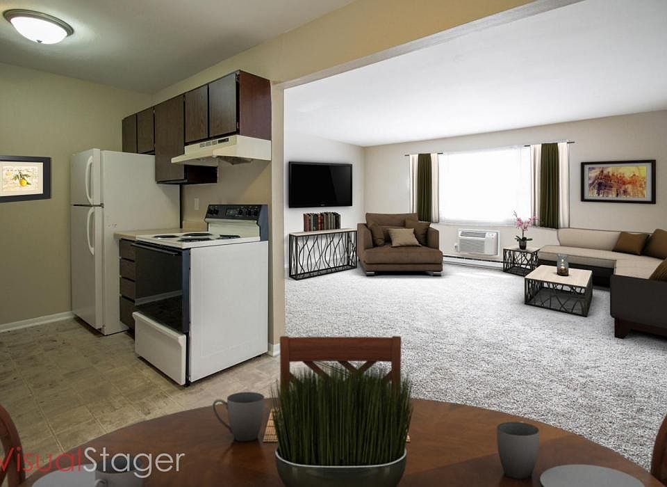 - Exterior features: 1 bedroom, 1 bathroom, ~700 square foot spacious apartment, Across from a park, Available November 1st, Classic kitchen with dining area, Electricity not included in rent, Located right off Hwy 19, New tub, surround and bathroom floor, No smoking in unit, Painted in a tan color with white trim, Sewage included in rent, Short drive to Madison, Water included in rent