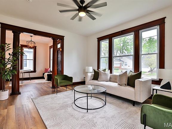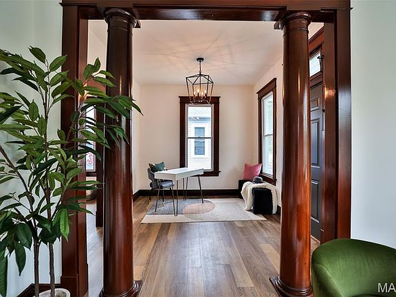 Step inside this beautifully updated 2-bedroom, 1.5-bath home located just minutes from Edwardsville’s shops, dining, and entertainment. A lovely foyer with original wood columns immediately welcomes you and adds timeless character to the home’s modern updates.