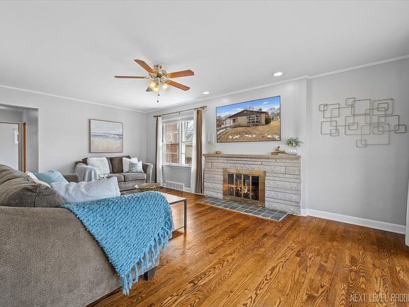 Seller is looking at offers this evening, at 5:00! Ready to be WOWED?! Check out this Mid-Century ranch home! It's nestled among stately residences, on a tree-lined street in West Aurora. The large eat-in kitchen boasts plenty of cabinets and counter space, plus a sizable area for your table. You'll love all the character in the living room, featuring gorgeous windows and a commanding fireplace. Three nice-sized bedrooms and a spacious bathroom complete the main floor. Downstairs, you will find a full, unfinished basement, with laundry and a half bath. Out back, is a generous, fenced yard. The newer, oversized garage sports a pleasant, covered patio on the side. Some recent updates include fresh paint, newly refinished hardwood floors in the living room and bedrooms, new gutters and a new roof (in 2024). This charming neighborhood is conveniently located near schools, expressways, shops, restaurants and entertainment! Hurry, don't wait to see this GEM!