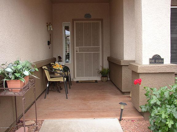Pride of ownership in this move in ready Chaparral Model. This has been updated. Granite counters in kitchen, plantation shutters throughout. New tile, carpet, dishwasher, hot water heater,toilets, fans,wider baseboard new stamped concrete open patio, and entry way. Screened in patio. Fenced backyard, gutters. Finished garage floor has build in cabinets. Water softener, reverse osmosis. Gas fireplace. Kitchen has island, pantry.Master has step in shower, seperate toilet area. Big walk in closet. This is resort living all year round. Come enjoy the salt water heated pool, spa, bbq grills, bocce ball, clubhouse with exercise room & lots of activities. Walking paths & hiking trails. Park, playground. Put this on your list to see!!