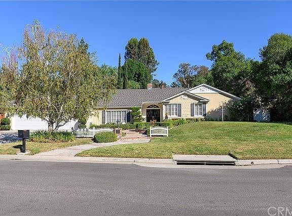 Reminiscent of Cape Cod this residence is clearly an extraordinary find! Inside this single level 4 bedroom, 3 bath haven, indulge in the timeless touches & commanding architectural presence of the decorative sconces, Venetian plastered walls, wrought iron & crystal chandeliers, multi-layered crown molding and beautiful hardwood & Crema Marfil marble flooring. The chef s kitchen boasts custom travertine countertops w/hand crafted edge detailing, top of the line appliances & travertine backsplash. The separate library/office highlights the coffered ceilings, crown molding, walnut flooring & built-in bookcases-all centered on a custom arched & bevel glass window. Showcasing the perfect blend of natural elements & custom upgrades, the master suite has limestone counters, luxurious soaking tub w/raised panel moldings, natural stone flooring & immediate access to the lush rear grounds w/a spa, rock fireplace & large grassy area w/terrace that can easily accommodate a sport court or pool. INCLUDED IN THE PURCHASE PRICE ARE THE FOLLOWING ITEMS: Refrigerator, Washer and Dryer, Fireplace Mantle and Screen, Backyard Shed, Patio Furniture at Top of Slope.