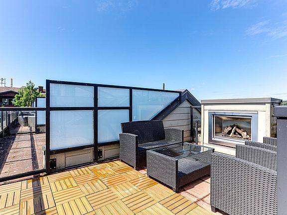 Waterfront townhouseStylish kitchenBuilt-in wine rackHardwood floorsCarpeted bedroomsGas fireplaceBrick walls accents