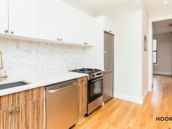 Rooms on opposite ends! BIIIIG two bedroom + 2 bathroom (full w/ tubs) apartment in the center of Bushwick! Kitchen features new fixtures, including a dishwasher. You'll want to see this one while it's still around :) Beautiful brick, fantastic natural light in the bedrooms, wood grain ceramic tiles plus: Gym, Laundry. Access to great views on the rooftop, large shared backyard. All the things! Call, text, or email to setup a time to see the spot! Cheers, Zach