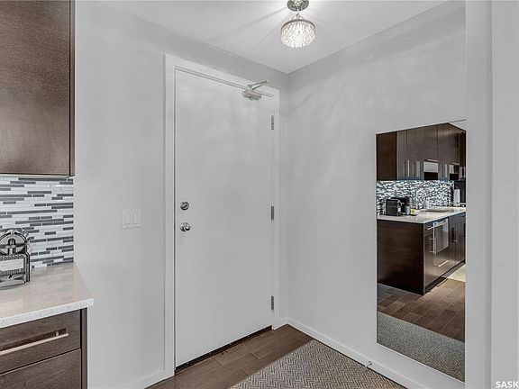 Welcome to London Flats, where convenience is key! This place is perfectly situated—you're just steps away from walking trails, parks, grocery stores, and great restaurants. Come on in to Unit 306. At 947 square feet, this home is ready for you. What truly sets it apart is the large quartz island and custom living room cabinetry with a built-in bar fridge—a unique feature you likely won't find anywhere else in the building. The open-concept layout is perfect for entertaining, with tons of natural sunlight and beautiful hardwood floors throughout. Step out onto the spacious balcony, where a natural gas BBQ hook-up and a great south/west view (of the park) are waiting. The unit also includes a dedicated laundry/storage room, a spacious master bedroom with its own 4-piece ensuite, and a second good-sized bedroom and additional bathroom. As an added bonus, some furniture is also included, making your move-in process that much easier. Other notable features are the tiled kitchen backsplash, stainless steel appliances, and two parking stalls. This is a fantastic opportunity you don’t want to miss.