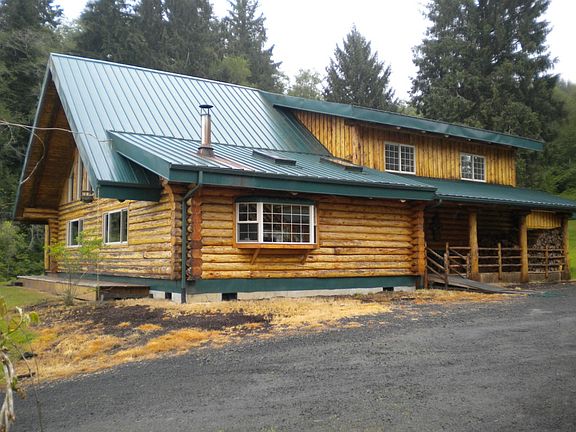 Hunter/fisherman paradise! Beautiful log home perched atop a hill of 30 acres of timberland, pasture, a duck/goose pond, and a fishing creek! Elk, deer, cutthroat, steelhead, geese, and ducks thrive in all corners. Log home is spacious, with large loft for extra BRs conversion or hunting and fishing lodge cots. Plus a 1 bedroom guest/caretakers cottage.Gourmet kitchen, living room, 1 3/4 baths, master, laundry on main floor. Large shop with walk in meat cooler and plenty of covered parking.