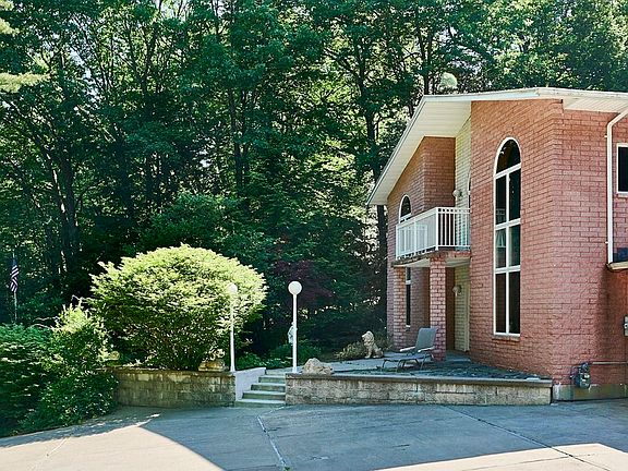 Beautiful Contemporary style home on private, hillside retreat! The front entry is covered by a second level balcony with impressive, 17' high windows on either side. From the entry foyer there is a glass paneled door with a view of the den & it's oval shaped bar with granite top. On the left is a front to back living/dining room with full-height granite fireplace & hardwood flooring. The adjacent kitchen has matching granite, & tons of cabinet space. There is a home office which could be a first-floor bedroom. Behind the den is a beautiful staircase, enclosed with glass panels, which leads to the second floor family room & opens to both the front balcony, and the 12'x 34', rear patio. The Main bedroom has an elegant bath with matching granite vanity, floor tiles and shower walls! There are 3 additional bedrooms, & another beautiful bath w/ marble floor & vanity on the 2nd level. Conveniently attached is a spacious 2-car garage, as well as a separate 2-car w/ storage above.