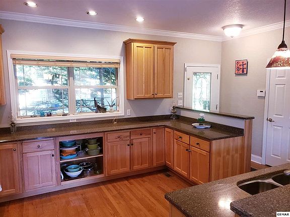 Mountain Views!!! This beautifully maintained mountain home is located in the quiet part of Gatlinburg. This home has a large kitchen with lots of counter space and storage with stainless steel appliances and quartz countertops. Main level has a large master with his and her closets and bonus room off master that could be a sunroom, studio, gym, nursery, library or craft area. Living room has cathedral ceilings, stone fireplace, wood floors and tons of natural light. Go upstairs and you have a nice loft area that also takes advantage of the views (currently used as home office). Upstairs also includes two nice size guest rooms and they share a very large full bathroom with tons of storage. Go downstairs to the garage that can accomodate 2 cars and home gym. The epoxy floored garage could make an amazing man cave with tv connection and the ability to heat and cool and a convenient half bath. Go around the corner and reach the unfinished basement area that is used for storage. This area could have a raised floor and access to a lower deck. This home is beautiful and is move in ready. Home is located 1 mile to Gatlinburg -Pittman High School , Rocky Top Sports complex, and the area community center. Sellers are relocating due to work. 2x6 Construction-painted 2018-South facing-Oak Floors-Hardie Board siding-cedar shakes-9' ceilings.