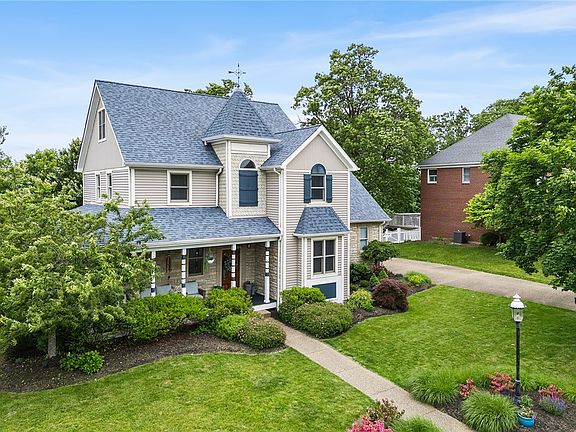 Spacious Bell Acres, light-filled home on quiet cul-de-sac in Quaker Valley School District. Meticulously maintained, this home features gleaming hardwood floors, a formal dining room, a dedicated office, and an updated kitchen with granite countertops. The living room offers easy access to the private Trex deck, perfect for enjoying the gorgeous green hilltop vistas. The second floor includes a spacious primary suite with a spa-inspired ensuite bathroom featuring heated floors and a large walk-through closet. Two additional bedrooms complete the second floor. A generous third floor provides a fourth bedroom, a full bathroom, and ample space for a variety of uses. The oversized walk-out basement is complete with a second kitchen, perfect for entertaining. Additional highlights include lush landscaping, tall ceilings, a flat driveway, and many timeless updates.