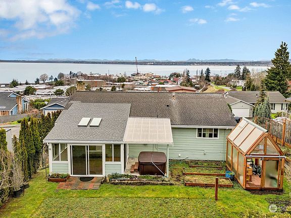 This beautiful 3 bedroom 1 full and 2 3/4 bath home has beautiful full bay views (covenant protects bay views) from both levels and is very close to Fairhaven. The upstairs kitchen is very chef friendly with a pot filler, gas range, under-counter lighting, lots of cabinets with pull-outs and all appliances are included. Quick access to Fairhaven for groceries, restaurants, coffee shops and book stores. Just down the street is the Ferry Terminal, Bus, Train station and trails. Attached single car garage has 220 V Electric vehicle charger. Upper and lower kitchens, as well as washer /dryers on both levels. Numerous fruit trees, berry, grapes compliment the raised beds. X large decks face the water views. Hot Tub, Sun Room & Greenhouse.