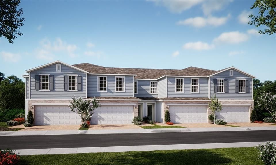 Welcome home to the Hamilton, a stunning end-unit townhome in the brand-new Thompson Village community! With no rear neighbors and an open-concept design, this 3-bedroom, 2.5-bath home offers modern living at its finest. The spacious Great Room flows seamlessly to a rear covered Lanai—perfect for entertaining and enjoying outdoor living. The well-appointed kitchen features 42" cabinets with crown molding, quartz countertops, a tile backsplash, stainless steel appliances, center island, and a pantry closet. Luxury vinyl flooring enhances the 1st floor main living areas, while window blinds are included throughout for added convenience. Upstairs, a Jack-and-Jill bath with separate vanities connects the secondary bedrooms, and the oversized Primary suite boasts a large walk-in closet and a luxurious en-suite with dual sinks, quartz counters, and walk-in shower with upgraded wall tile surround. With its exterior decorative stone accents, brick paver driveway, and access to community amenities including a playground and guest parking, this home combines comfort, style, and convenience—all in a prime location close to shopping and dining.