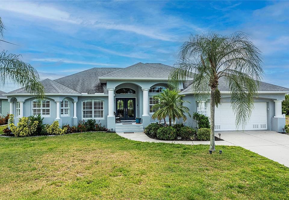 *TURNKEY FURNISHED* This 5 BEDROOM* 4 BATH* Whirlpool home is filled with value PLUS HAS A POOL/SPA +WATERFRONT/ serene FAIRWAY VIEWS in Rotondas Pine Valley Section. PERFECT FOR AIRBNB INCOME OR A BIG FAMILY! Open split floor plan with TWO MASTER SUITES, perfect for in-law living or luxury guest space, this sensational furnished home has wonderfully high ceilings and 8 ft. glass doors double door entry with peek-a-boo separate dining room with built -in corner shelving for showcasing plants or favorite pieces, fabulous sunburst windows you can literally see right through this elegant home. Soaring ceilings highlight the main tiled living area overlooking big Pool with rich pit style sofa to enjoy the beautiful outside view through the disappearing sliders, lots of character adorned with open sliced stationary glass topper windows for that wonderful natural accent lighting. Convenient breakfast bar, crisp, nice cabinets, abundant plant shelves, a decorators delight all cooks can appreciate the character here and opens to all the rooms with nice pool view! Kitchenette too has ample room to fit an office desk or two, of course with views.Master suite has large King size bed, plantation shutters and french doors directly to pool area and is sure to pamper with his & her walk in closets, twin vanity, luxurious, jetted soaking tub and nice roman shower. Second master suite has a big King sized bed, in-suite bath with yet another Jacuzzi plus tiled shower, updated double raised sink vanity which also offers private access to screened pool area. Third and Fourth bedrooms share a jack and jill bath. Fifth Bedroom comes with bunk beds, desk and a bath that also cabanas out to the pool. Range, Refrigerator, Dryer, Air Condition Pool Pump and Pool Heater are all new. Upscale open air iron Fenced yard is great for pets... MOVE-IN ready to your chance at fabulous Florida living/entertaining with so many amenities close to beach, fishing, shopping. Sellers would like to close August 8th, 2022! Priced for sale so don't delay, call today!