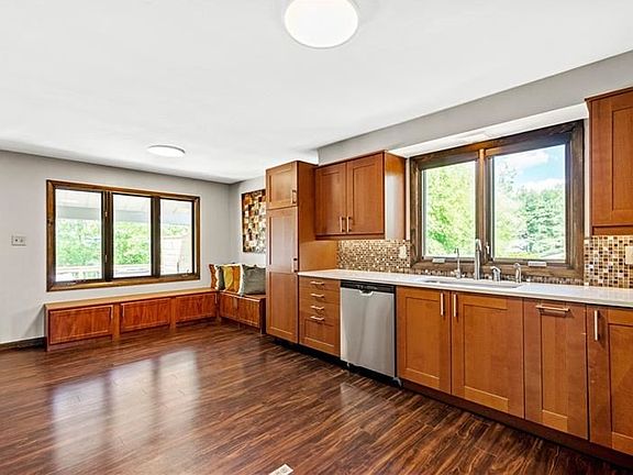 Not your average home! From the moment you arrive, you'll appreciate the unique style, refreshing open floor plan, extra touches & design features, such as a cathedral ceiling. gleaming floors, & large windows for natural light. From the updated bathrooms, chef's kitchen with granite counters, stainless appliances, built-in seating, & access to the deck overlooking a private wooded lot. this one has it all! You will love spending time in the large comfortable living room with a soaring fireplace or enjoying the lower level family room with another cozy fireplace, wet bar, powder room, & access to the patio. The primary bedroom w/ a walk-in closet & ensuite bath is positioned on its own level plus 3 bedrooms & bath on the top level. The laundry room & gym are on the LL. There's abundant room for anyone who wants to spread out & have their own space! You'll love the convenience of the location offering a quiet, well-established neighborhood near schools, shopping, restaurants, & Rt 19.