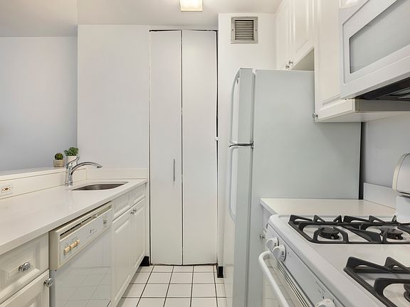 Sleek white tiled bathRoof deckGenerous closet spaceSparkling white cabinetrySpacious bright east-facing one-bedroom