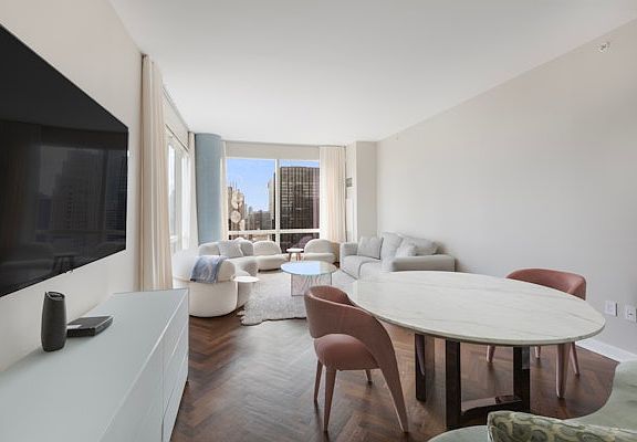 The spacious living and dining areas are ideal for both entertaining and relaxing, with oversized windows that frame panoramic views of Central Park. The gourmet kitchen is equipped with top of the line stainless steel appliances, custom cabinetry, and elegant granite countertops. Each bedroom offers ample space, with the primary suite featuring a walk in closet and a spa inspired ensuite bathroom complete with dual vanities and a soaking tub.