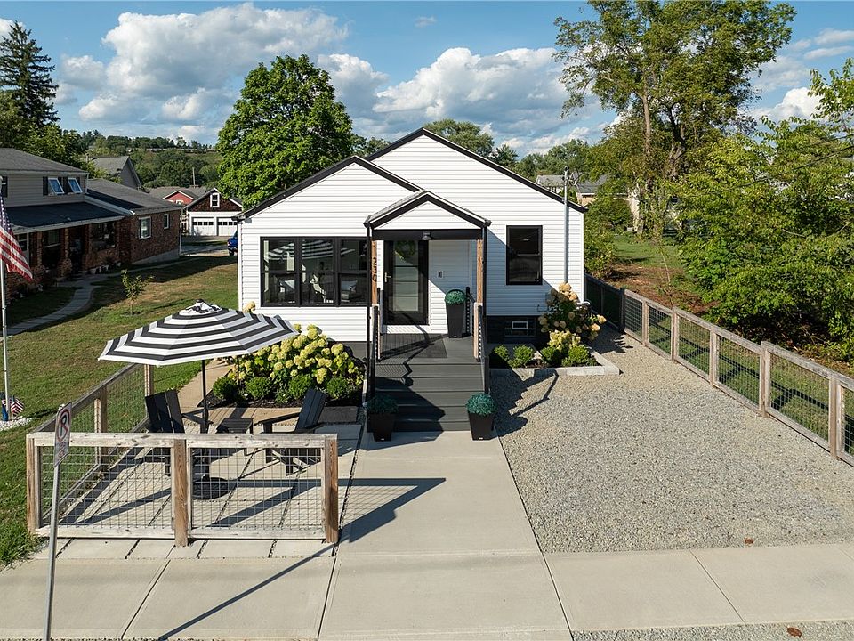 Step into a home where clean lines meet functional spaces, a perfect blend of modern farmhouse charm and California cool. Originally designed with the heart of the home in mind, the eat-in kitchen stands as a gourmet haven. Natural light floods the living spaces, with all-white walls and large windows. Main level Primary Suite with storage seamlessly integrated into the architecture that maintain the home's streamlined aesthetic. An additional bedroom, powder room and laundry add a clean touch to the main level. Separate living area in the back with a fireplace and additional room for dining. Three season, Zen room makes the perfect space for evening relaxation. The backyard has a corrugated metal fence adding a unique industrial touch, also featuring artificial turf, a retractable screen system, an outdoor shower, and dog run. Conveniently located just a minute’s walk from Main Street and the iconic Ligonier Diamond. This house is not just a home but a carefully curated lifestyle.