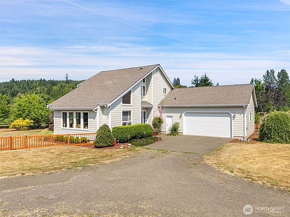 Conveniently located between Shelton & Olympia off Hwy 101. Well cared for 2016 sf home. Primary bedroom on main floor, 2 bedrooms upstairs, 2.5 bath, kitchen w/eating bar, walk in pantry, dining room, living room, utility room, spacious walk in attic for storage & attached 2 car garage. Newer large covered patio w/recessed lights, outlets & ceiling fan. 5 acres including: fenced pasture, animal shelter, solar feeder that lights up, garden shed, green house, fenced garden w/fruit trees, grapes & raised beds. RV parking/dump. 30x14x11.5 RV storage w/electricity. 30x30 brick shop/garage w/200 amp service, 2 offices, wood stove & a 3/4 bath. Last but not least, a fully finished, 18x12 Hobby Room w/heat, laminate flooring & a cold water sink.