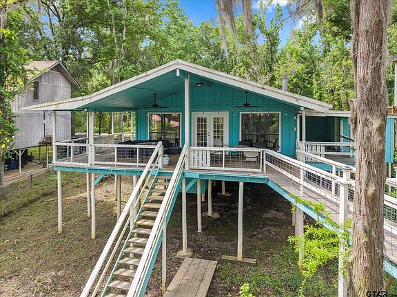 Welcome to your dream lakehouse on Big Cypress River on Caddo Lake! This one-of-a-kind location is considered the best spot on the river, offering breathtaking views and unparalleled tranquility. Sit back and relax on the catwalk as you watch boats cruise along the river, all while enjoying the peacefulness of your private cove. Inside you will enter to an open concept living, dining room and kitchen with gorgeous views of the river. The large Primary Bedroom is a true retreat, with beautiful Cedar Plank Walls, a spacious bathroom featuring a Jacuzzi Garden Tub for ultimate relaxation, and a Huge Walk-in Closet. The Second Bedroom is fresh and inviting, while the Third Bedroom is newly remodeled offering a great space as a guest room, office or kid’s game room. Step outside and prepare to be amazed! The wrap-around porch and deck areas provide breathtaking views of the river, creating a serene setting perfect for both relaxation and entertaining. For fishing enthusiasts, this is truly a paradise. Imagine casting your line and reeling in the catch of the day, just steps away from your own backyard or swimming off the dock. The boathouse below deck is conveniently attached to the dock by plank walkways, offering easy access for all your water activities. But the features don't end there! This home also includes a spacious workshop located under the house, providing ample space for boat storage, golf cart parking, and more. Other notable features include a fenced yard, RV hook-up, and covered parking. By water, it is centrally positioned on Big Cypress Bayou, nestled in at Mossy Break and Clintons Chute near Cypress Village. Sesame Street boasts peacefulness and tranquility, with no through traffic. You are a quick five minute drive by boat to Big Pines Lodge, 20 minutes to Jefferson or 40 minutes to the casinos in Shreveport - incredible! This home has never flooded, providing peace of mind for you and your family. FULLY FURNISHED riverfront retreat!