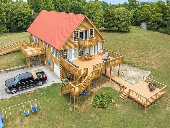 This move-in-ready opportunity features a stunning wood-sided retreat located on 2 unrestricted acres w/ room to entertain & stretch out, & convenient proximity to I40. Through the front door, you're greeted w/ open concept living w/ distinct spaces - the cozy living, the trendy kitchen, followed by the dining space - all featuring dramatic windows & natural light. A convenient primary/ensuite, 2 add'l bedrooms & full bath are located on main level. Upper level gives opportunity to “make it your own” w/ an open floor plan, full bath, built-in bar, & TWO balconies; this fully finished space is large & could serve as an add'l suite, gameroom, home gym! The lower-level offers a true bedroom, full bath, large utility space, 2nd living + kitchen, exterior access, & 1 car garage access. Admire wildlife, sunsets, & tranquility from the open & covered exterior living spaces. https://www.youtube.com/watch?v=Z60uXT2dg1o&list=PL8CwlyIGv8ZuK_F4JBKtqqcYV9q2Mt9jG&index=8