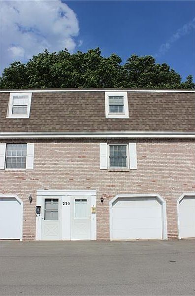 This two bedroom townhouse offers a garage and totally maintenance free living. The rent of 1275 includes heat, water, sewage, and trash. Very relaxing setting with large flat yard (maintained by the association) and deck. Stainless steel appliances in the eat in kitchen. Equipped with washer and dryer. Small pets allowed with additional monthly fee. four one two four hundred, six nine, eight one.